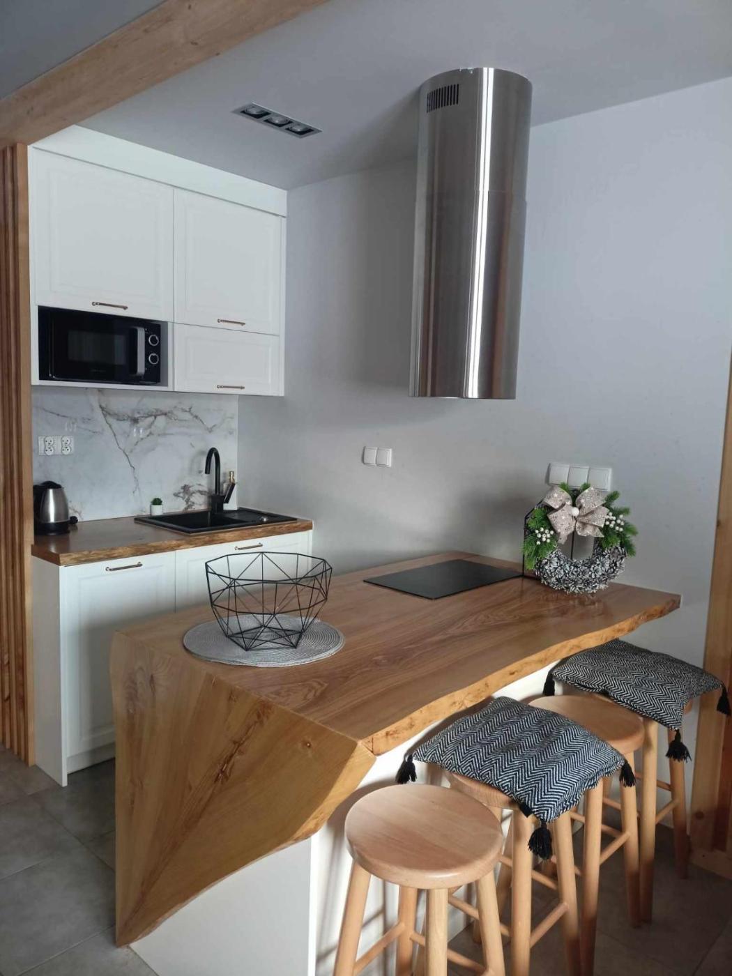 Domek. Featuring a private entrance, this chalet is comprised of 1 living room, 1 separate bedroom and 1 bathroom with a shower and a hairdryer. The fully equipped kitchenette features a stovetop, a refrigerator and a microwave. Boasting a terrace with garden views, this chalet also offers an electric kettle and a flat-screen TV. The unit offers 4 beds. Domek - 7 osobowy.